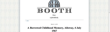 My poem “A Borrowed Childhood Memory, Alloway, 4 July 1967” can be found at Booth: Butler University’s online journal. Please click the link and check it out.